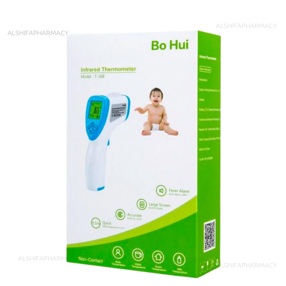 Unlike traditional thermometers that require physical contact, the Bo Hui infrared thermometer works on non-contact infrared technology, meaning it measures body temperature without touching the skin. This makes it safer, faster, and more hygienic, especially in situations where multiple people need to be checked.