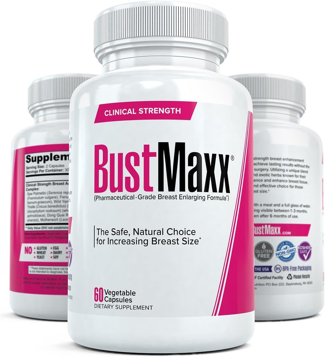 BUSTMAXX Breast Enhancement Pills are a popular and safe dietary supplement designed to naturally promote fuller, firmer, and more lifted breasts without surgery or hormonal therapy. Each bottle contains 60 capsules, made from a blend of premium herbal extracts, plant-based estrogens, and essential nutrients.