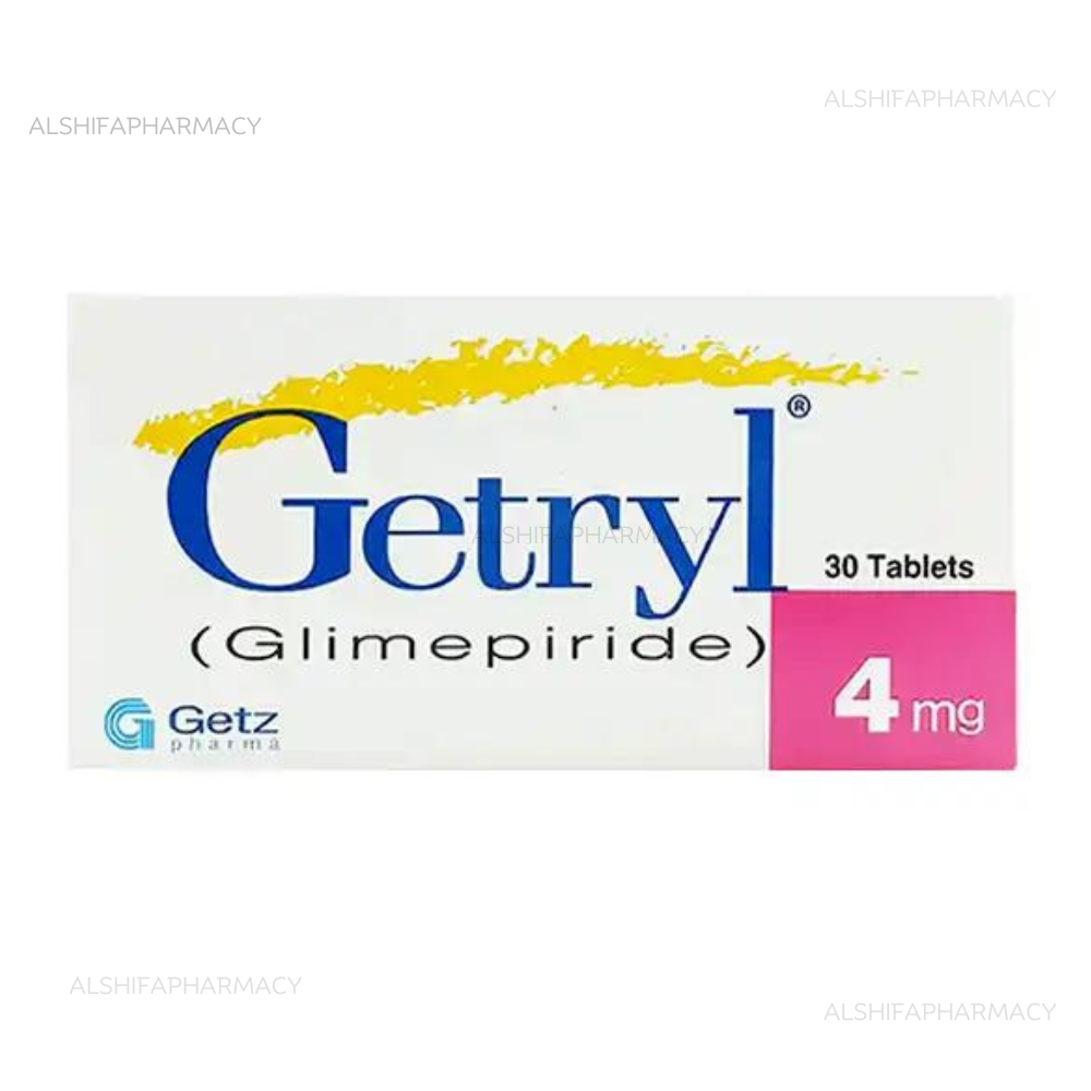 Getryl Tablets 4mg contain Glimepiride, a well-known oral anti-diabetic medication used for type 2 diabetes mellitus. Each tablet helps in controlling blood sugar levels by enhancing insulin secretion from the pancreas. These tablets are ideal for patients who require consistent glucose control in combination with diet and exercise.