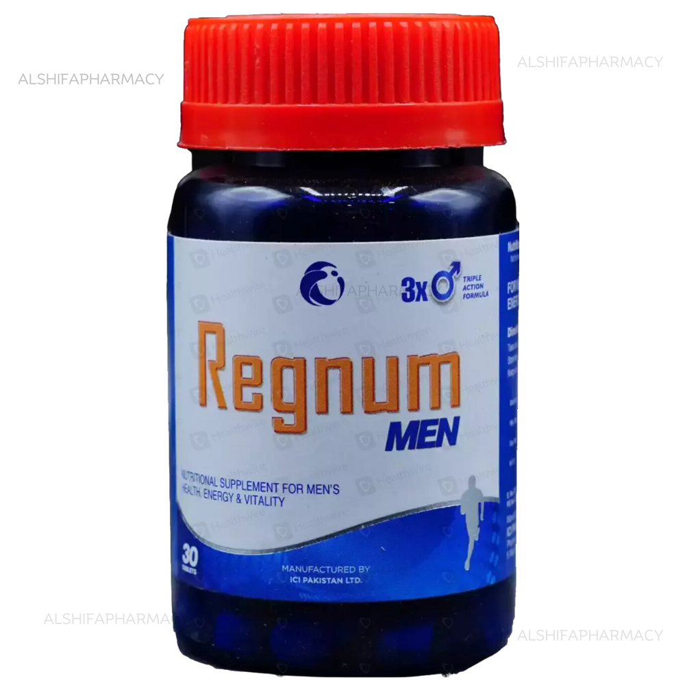 Regnum Men Tablets (1 Bottle = 30 Tablets) are available at Alshifa Pharmacy and Alshifa Medix.